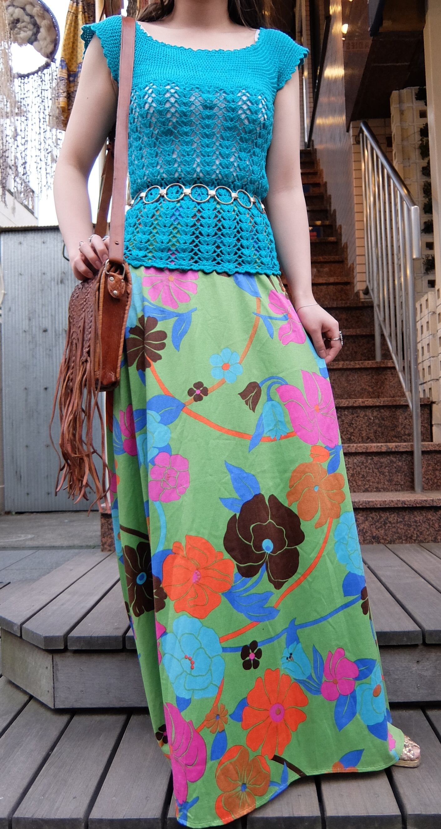 こちらの商品は裾に小さな汚れがございますが、柄にまぎれ目立たない程度です。
