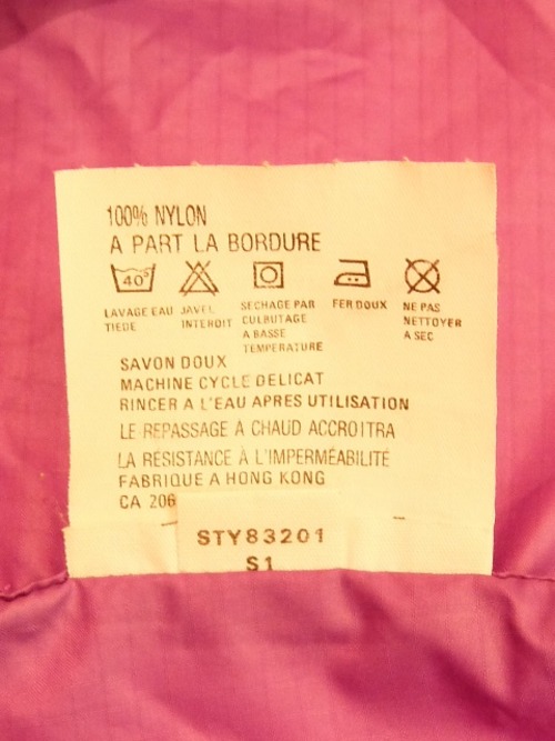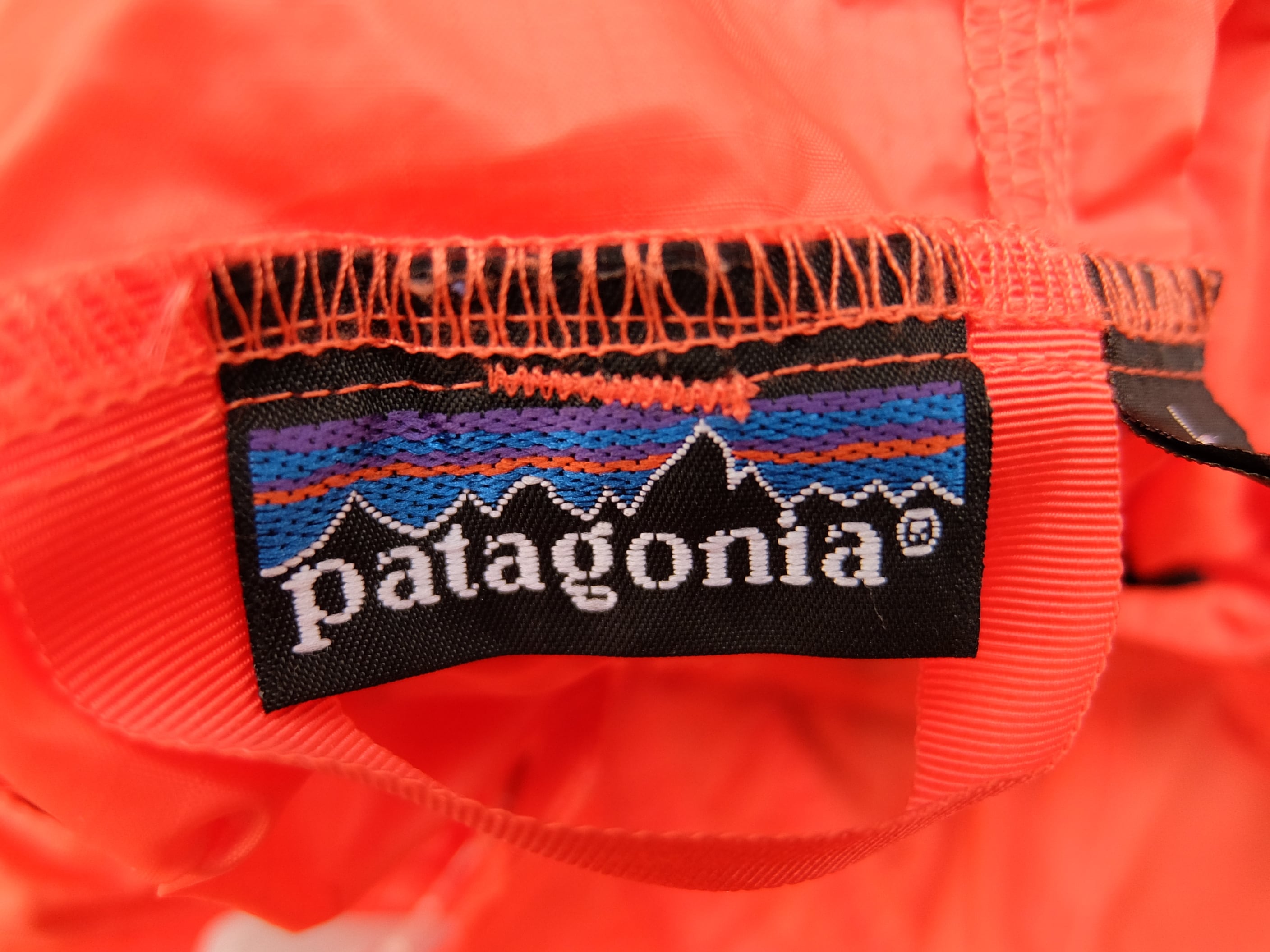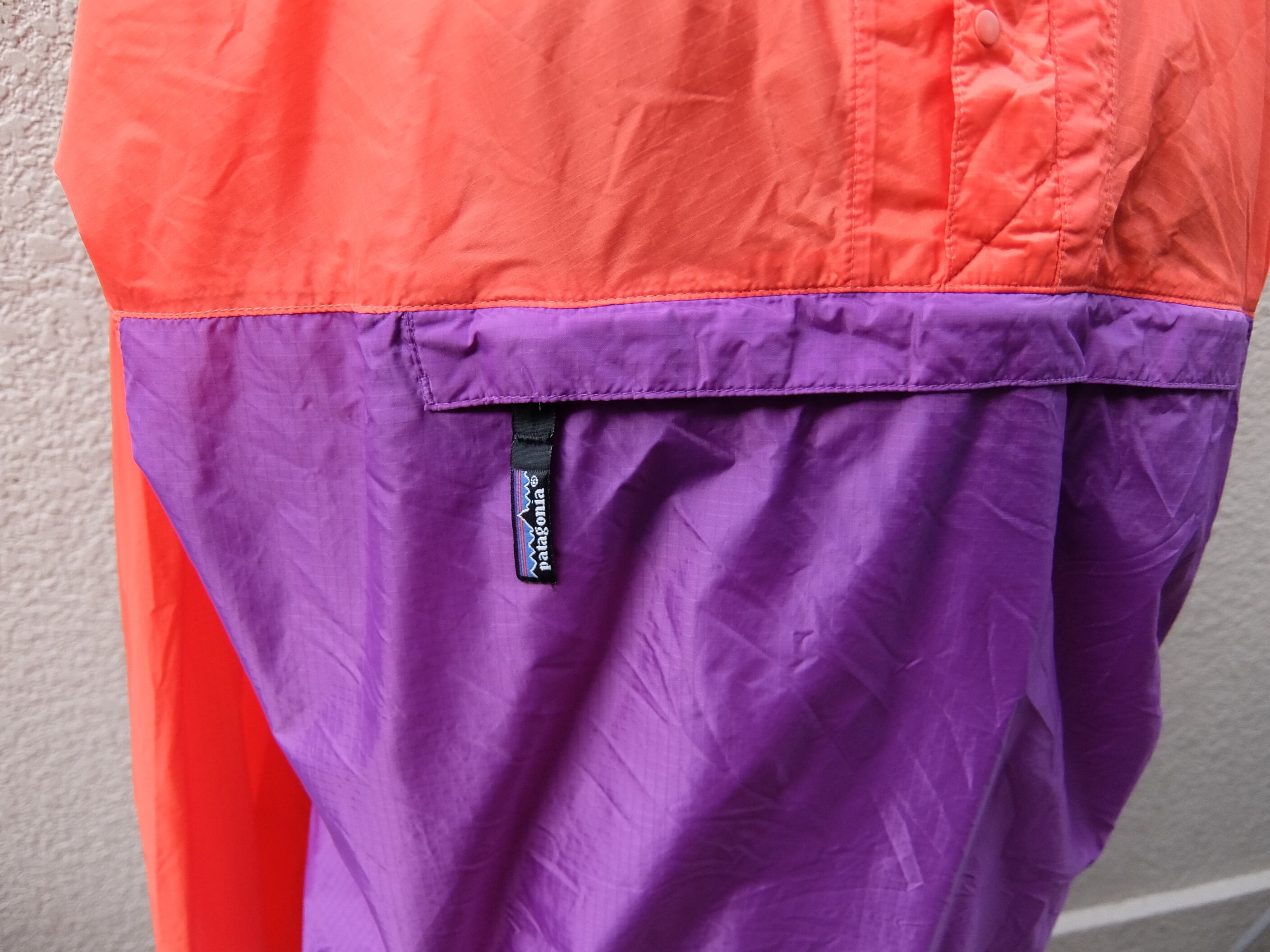 オレンジ×紫という90年代のパタゴニアらしい配色、ポケットは腹部に1つだけというシンプルなディテールです。
