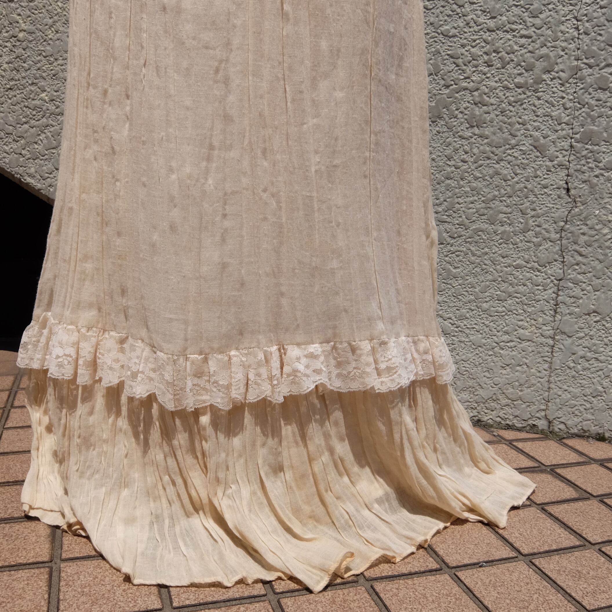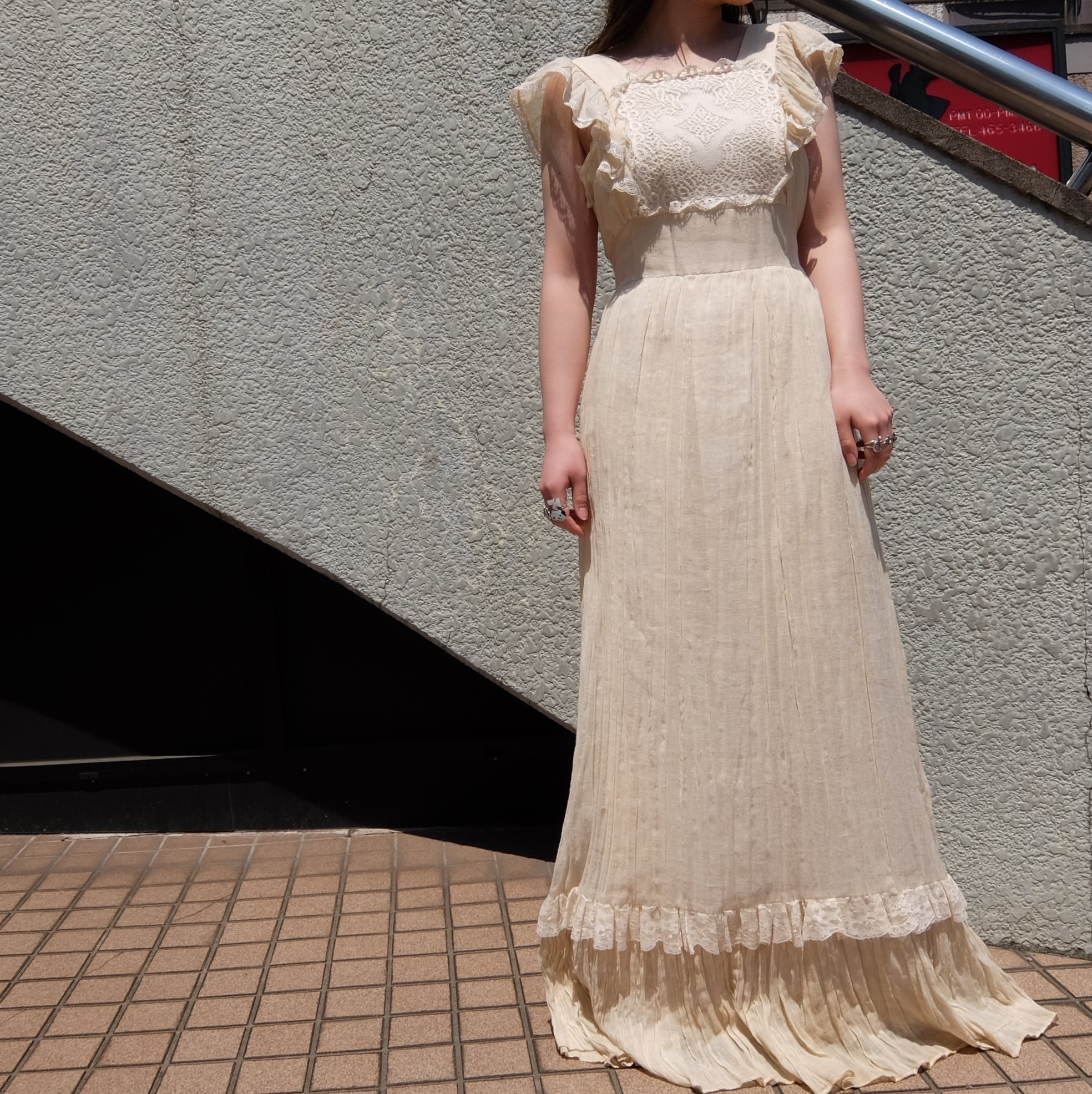 "GUNNE SUX" はアメリカサンフランシスコで設立され、主に70年代に主流になったロマンティックなデザインでヒッピーファッションを代表するブランドです。世界中にコレクターがいて、日本でも多くのファンがいる人気のブランドです。細かいギャザープリーツのたっぷり入ったロングドレスです。