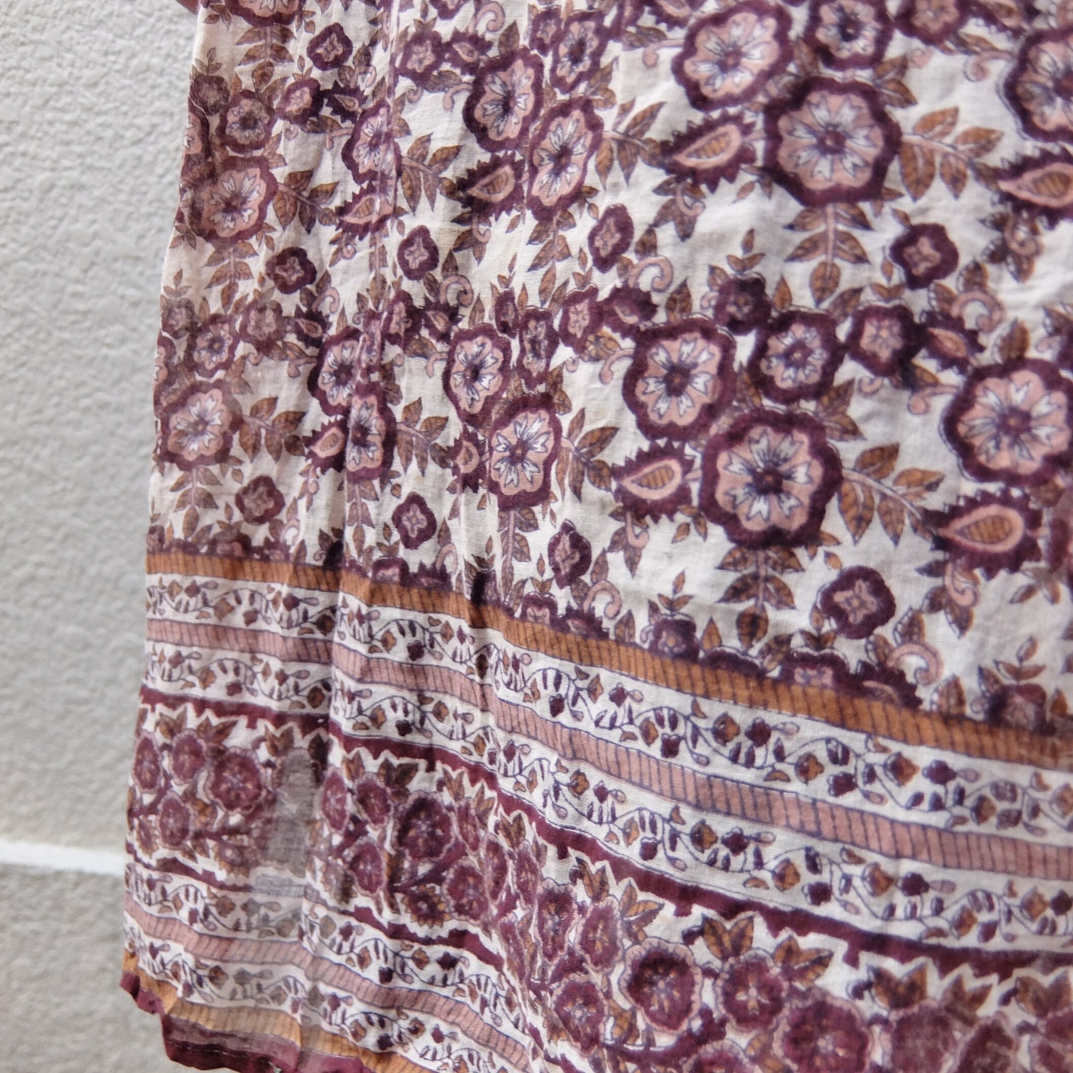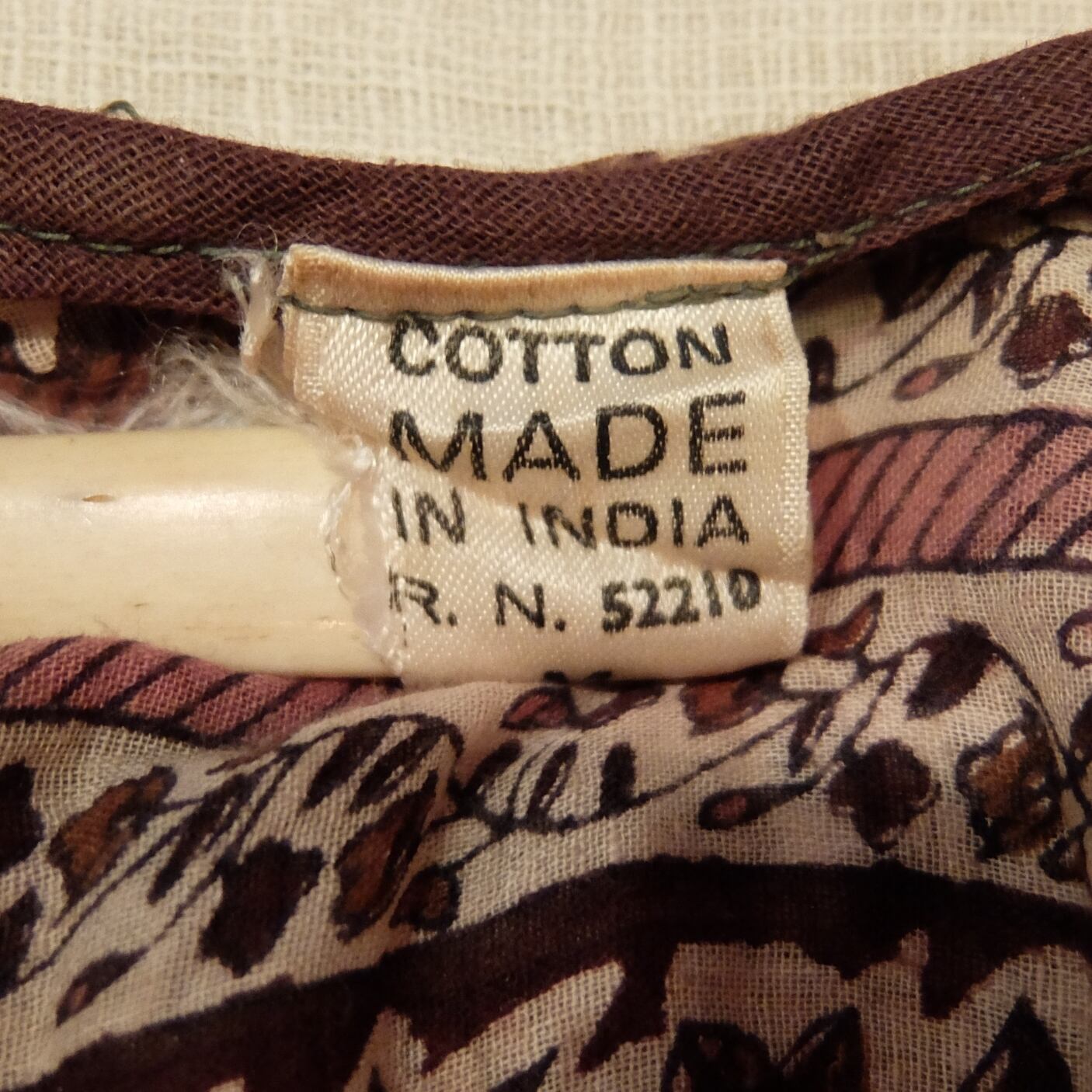 ヴィンテージインド綿は70年代のインドブームで、イギリスやフランスから広がりました。作られていたのはインドですが、ロンドンやパリのブランドの物が数多くあります。ウッドストックなどのフェスが行われた、サンフランシスコのブランドも有名です。当時ヒッピー達がフェスで着ていたり、街中でも多くの若者が来ていました。近年ではセレブ達のブームから世界中に人気が広まり希少なアイテムになっています。