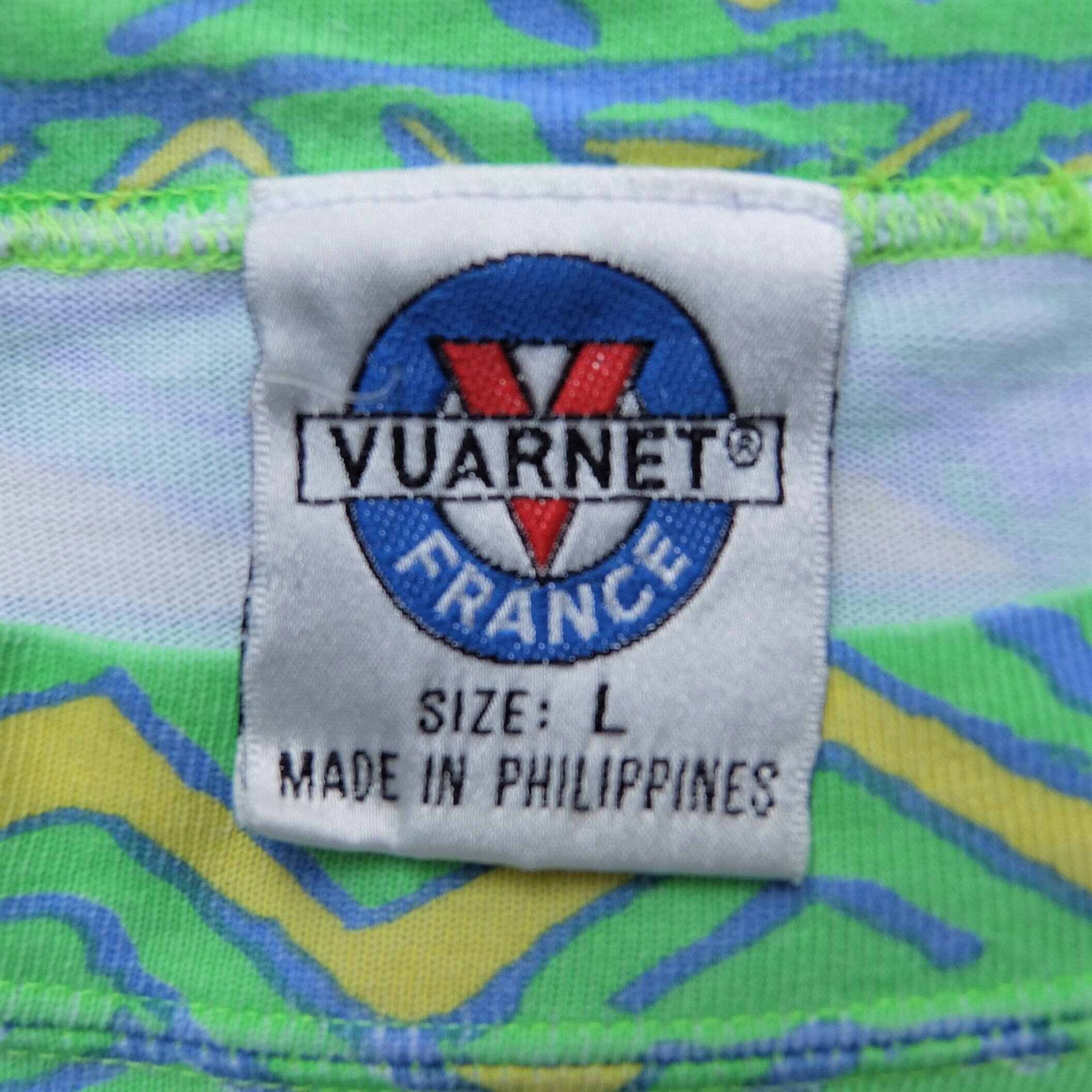 "ヴュアルネ” というフランスのアイウェアブランドのTシャツです。爽やかなライムグリーンとイエローの配色が夏らしい一枚です。