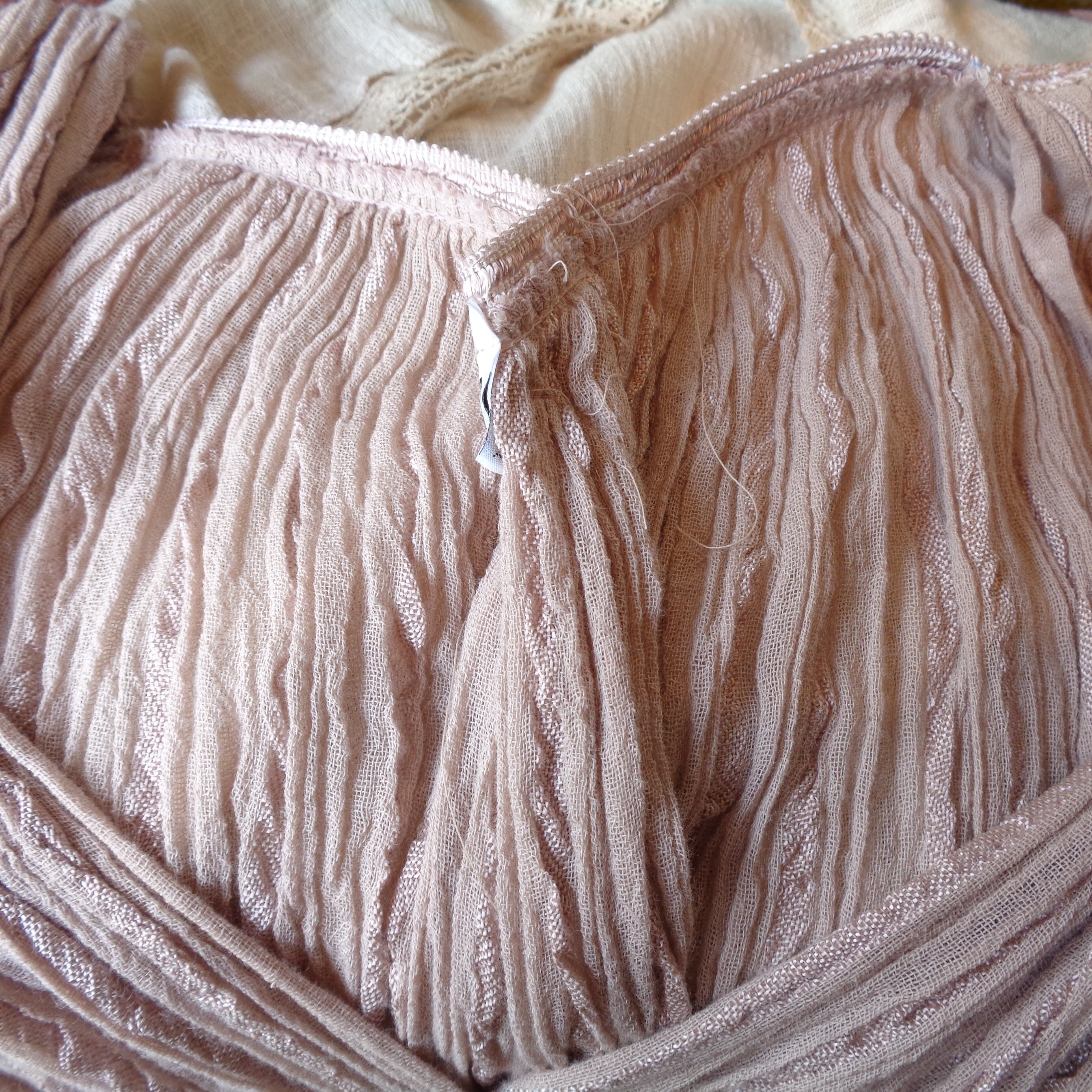 こちらの商品は後ろ見頃にサイズ調整のリペア跡、花刺繍に多少のほつれがございます。