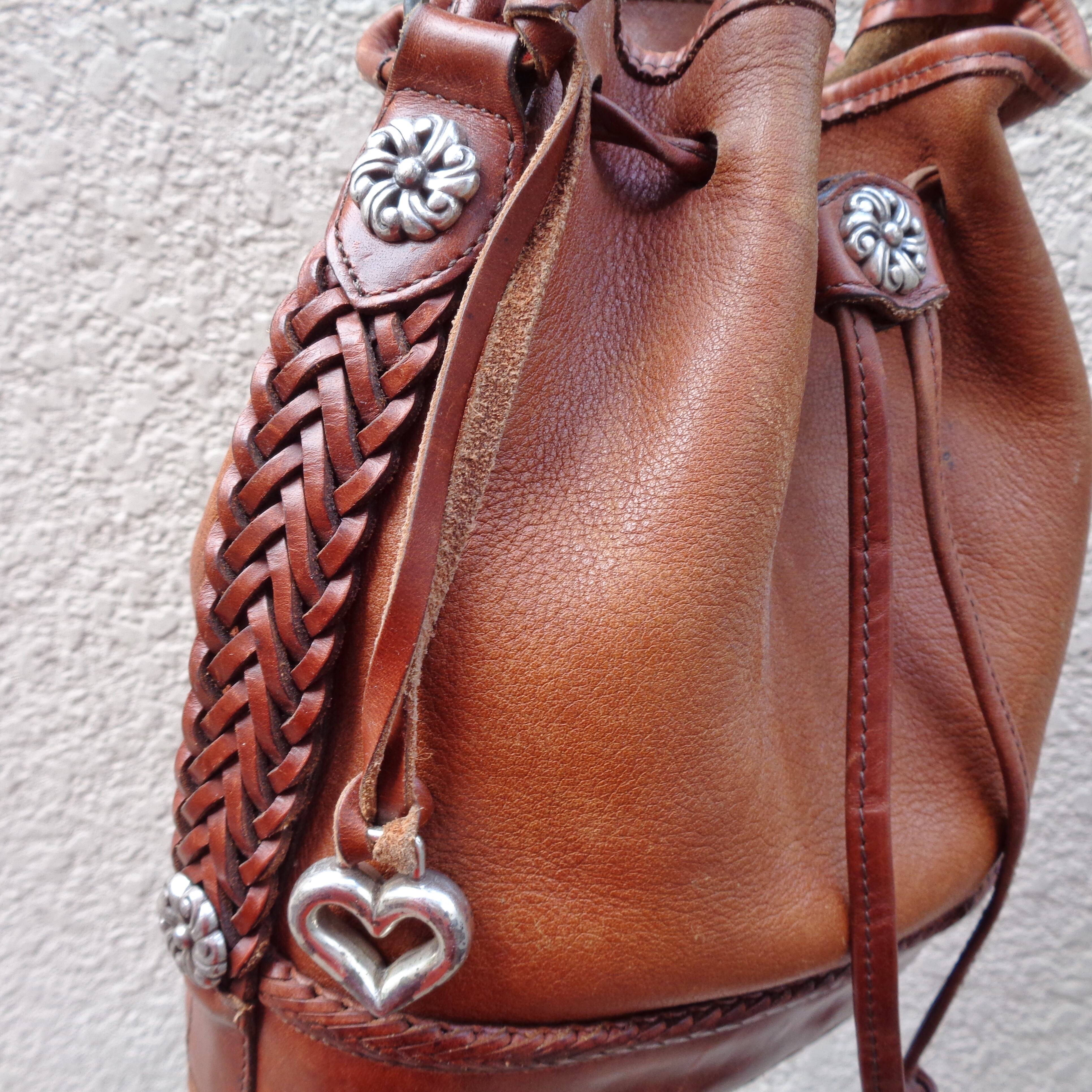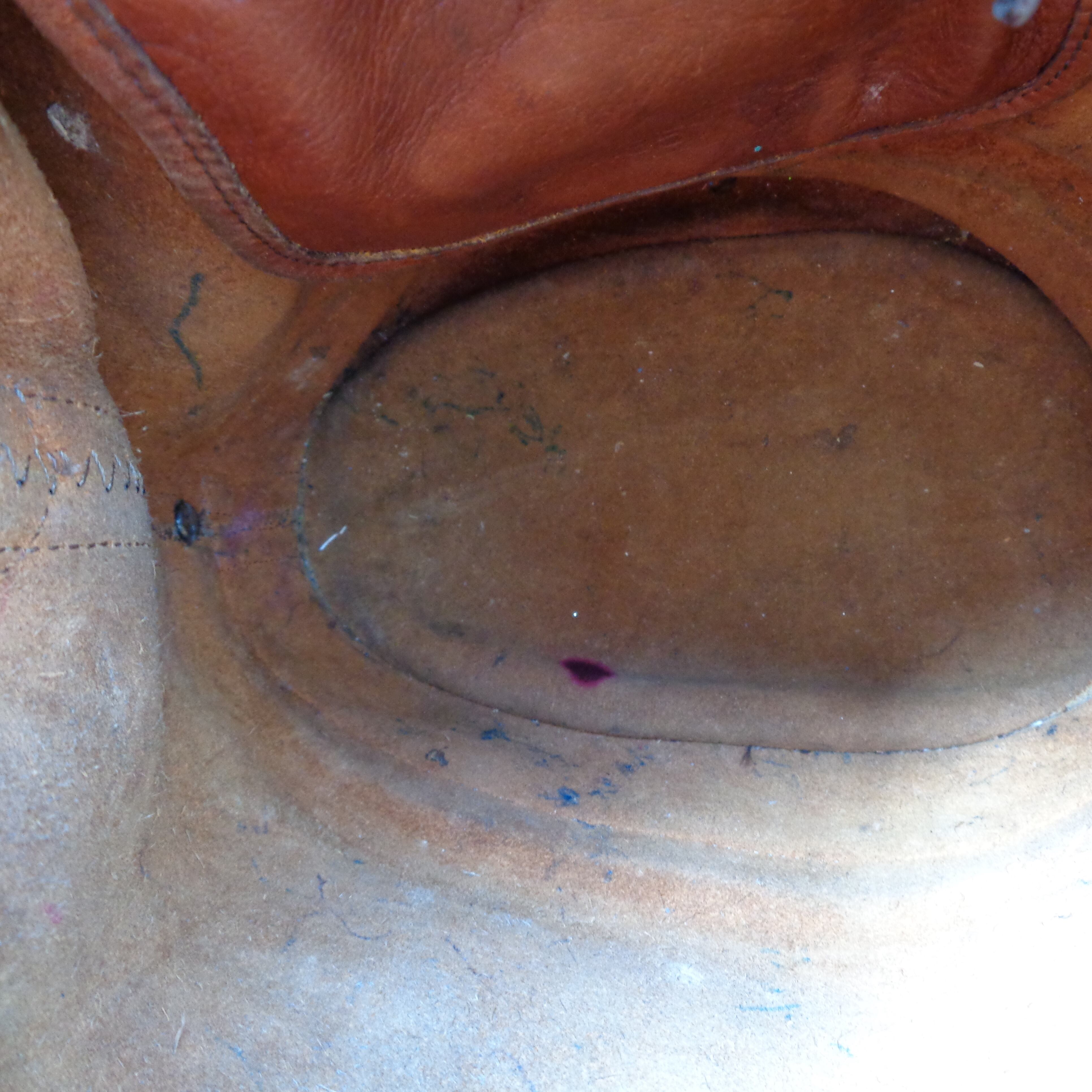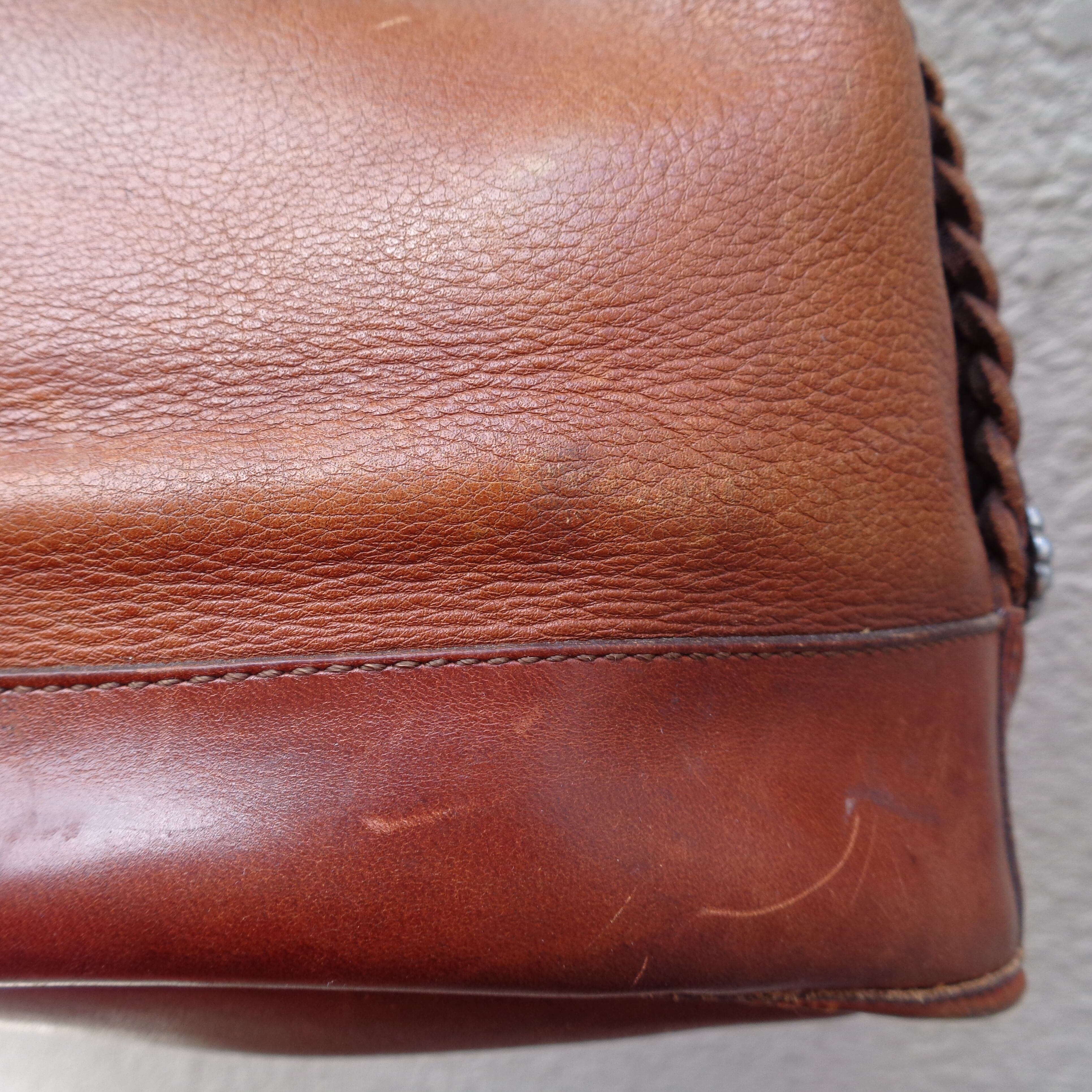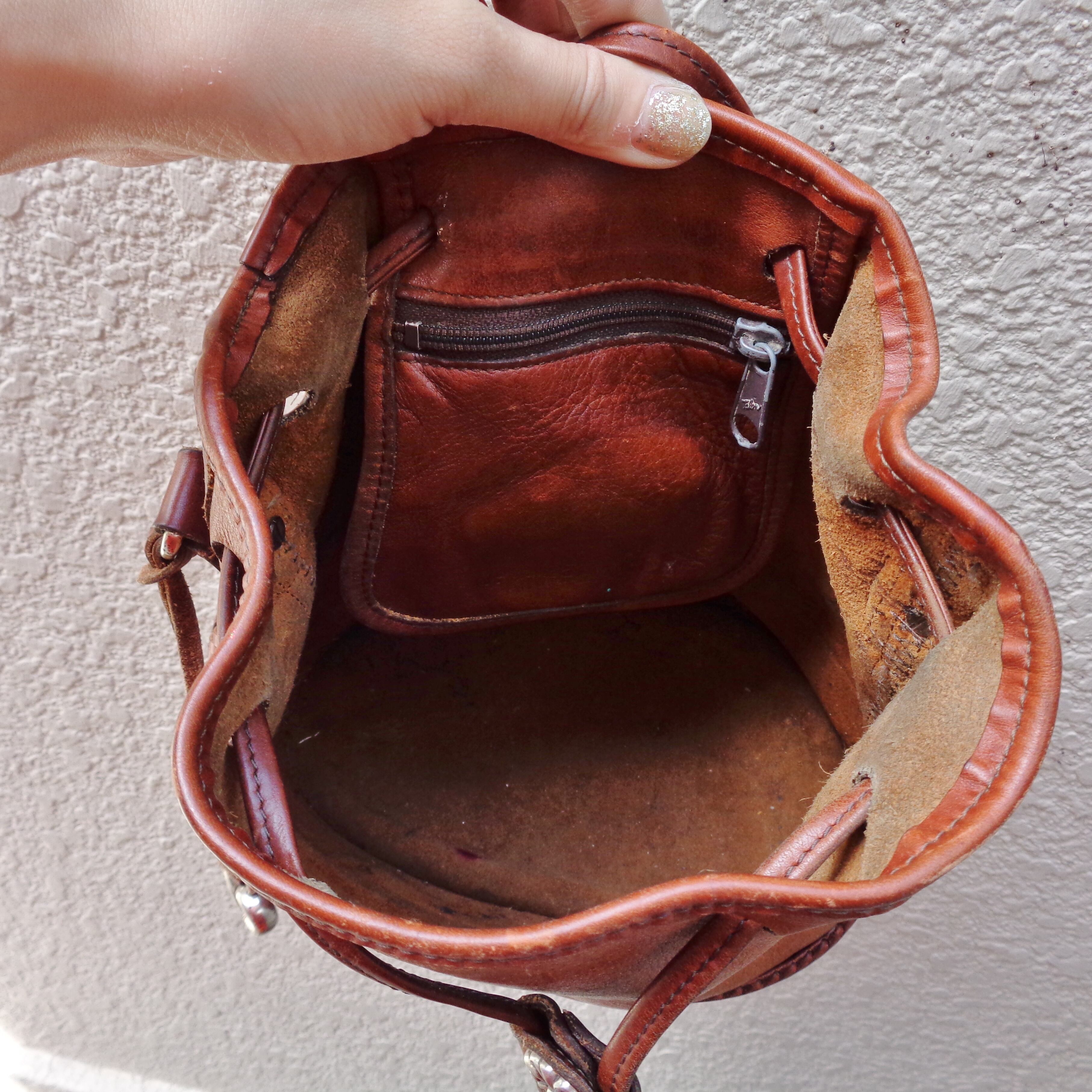 こちらの商品は全体的にレザーの使用感、金具に変色があります。下部、上部、真ん中、内側に汚れがございます。内側にはポケットが付いています。