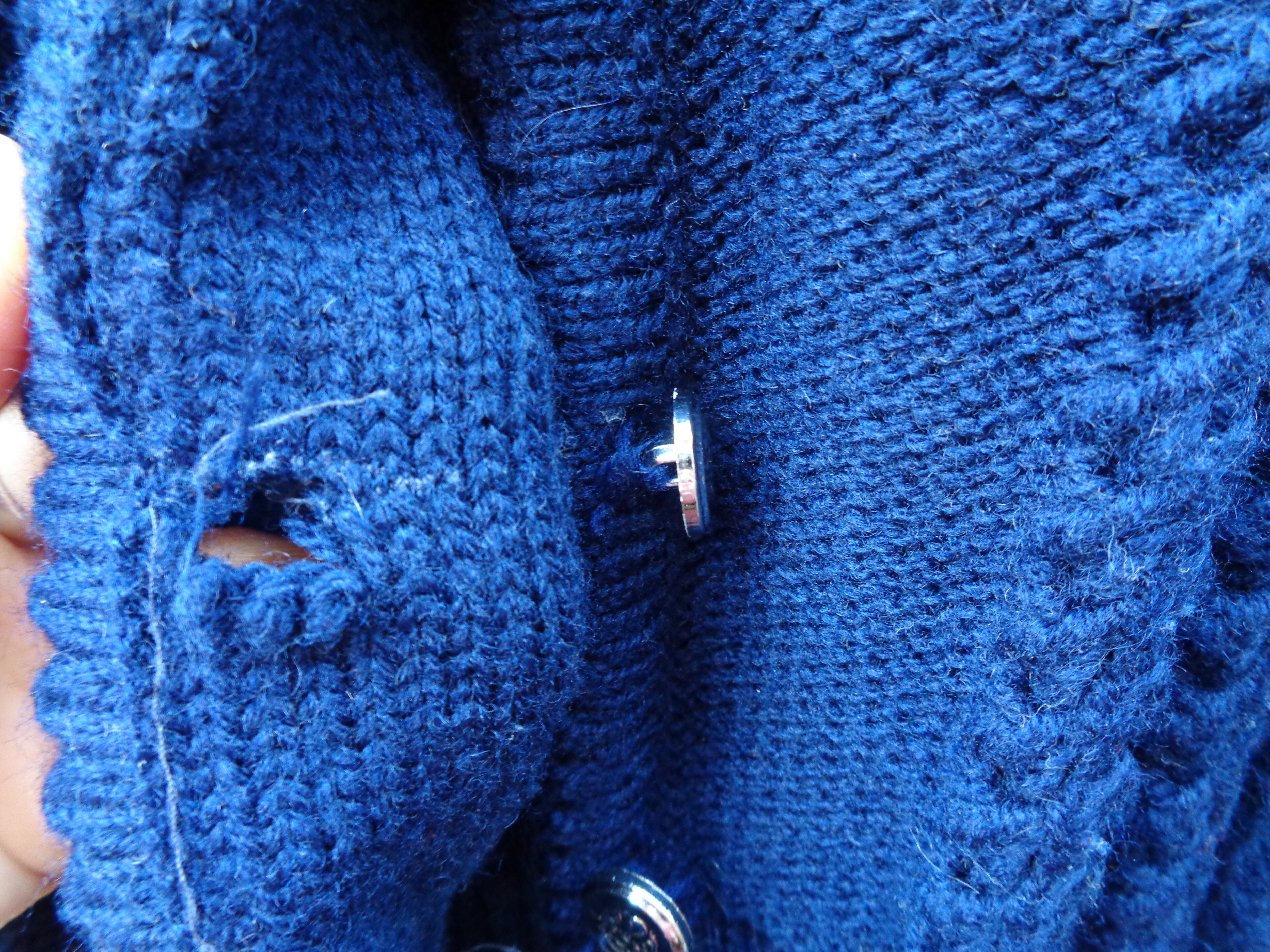 こちらの商品は、上から5つ目のボタンホールにほつれがございます。