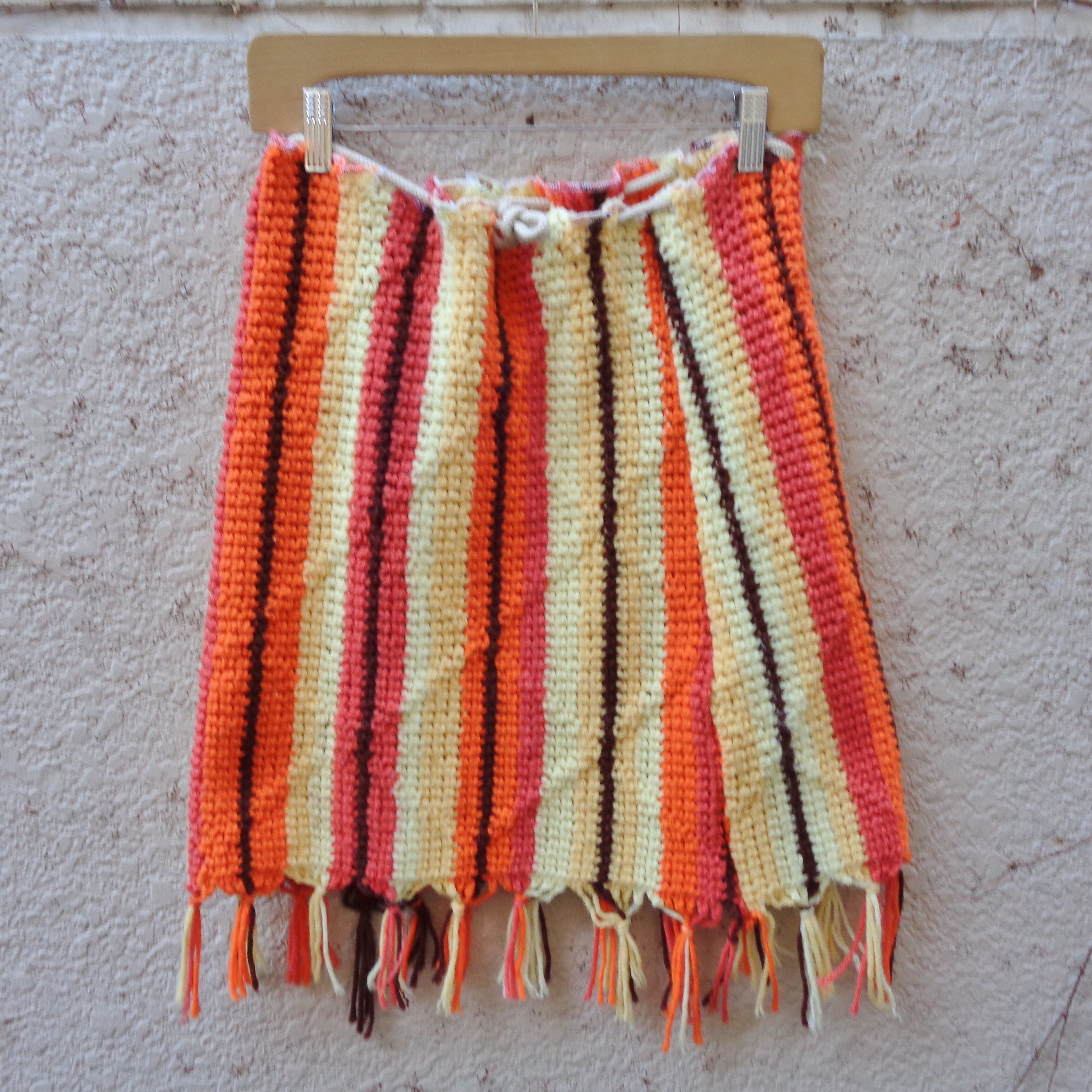 ミニ丈にロングブーツを合わせたり、デニムパンツやフレアパンツと重ねても可愛くコーディネート出来ます。70sらしいオレンジ × ブラウンが目を引きます。