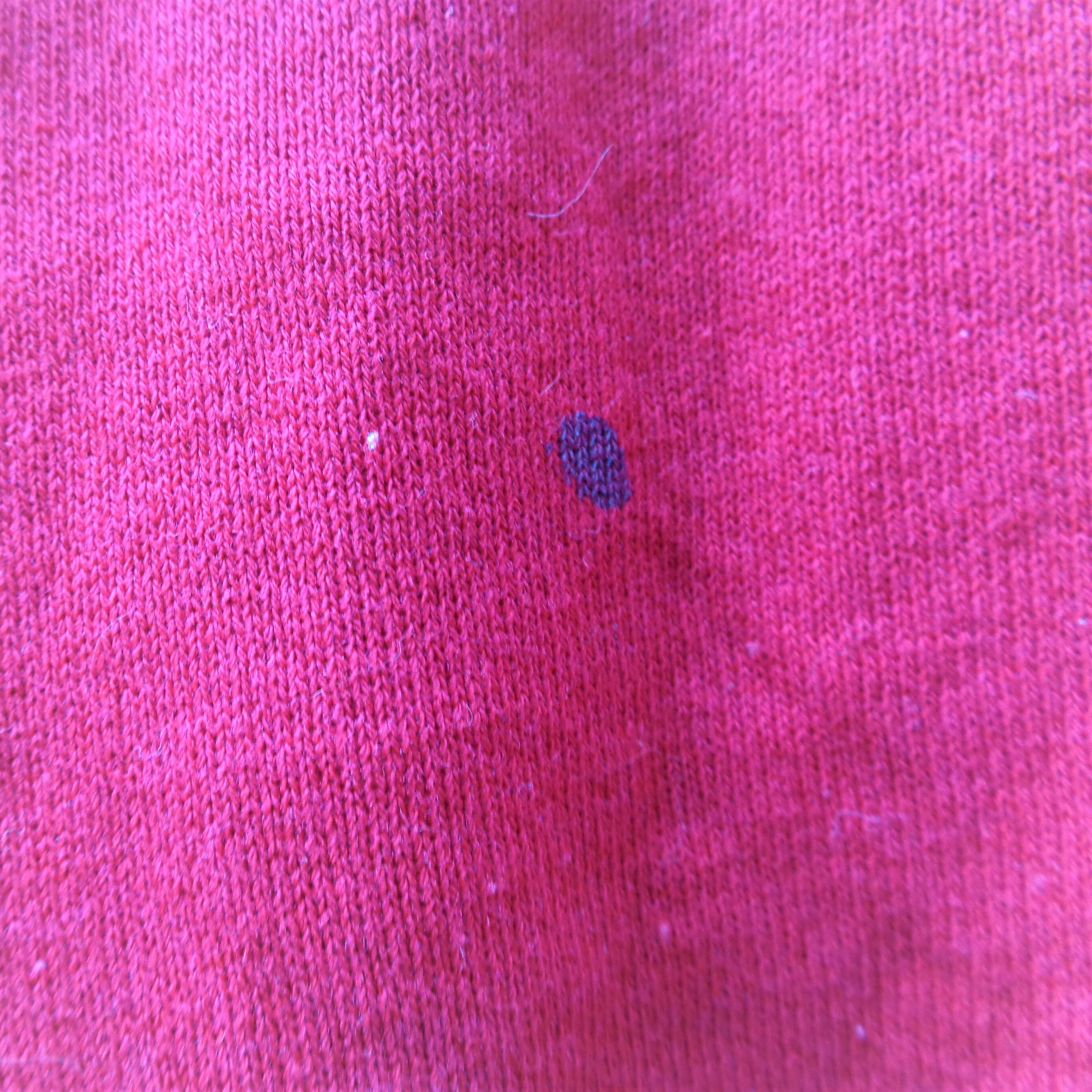 こちらの商品は左袖と前身頃の右下に小さな汚れがございます。