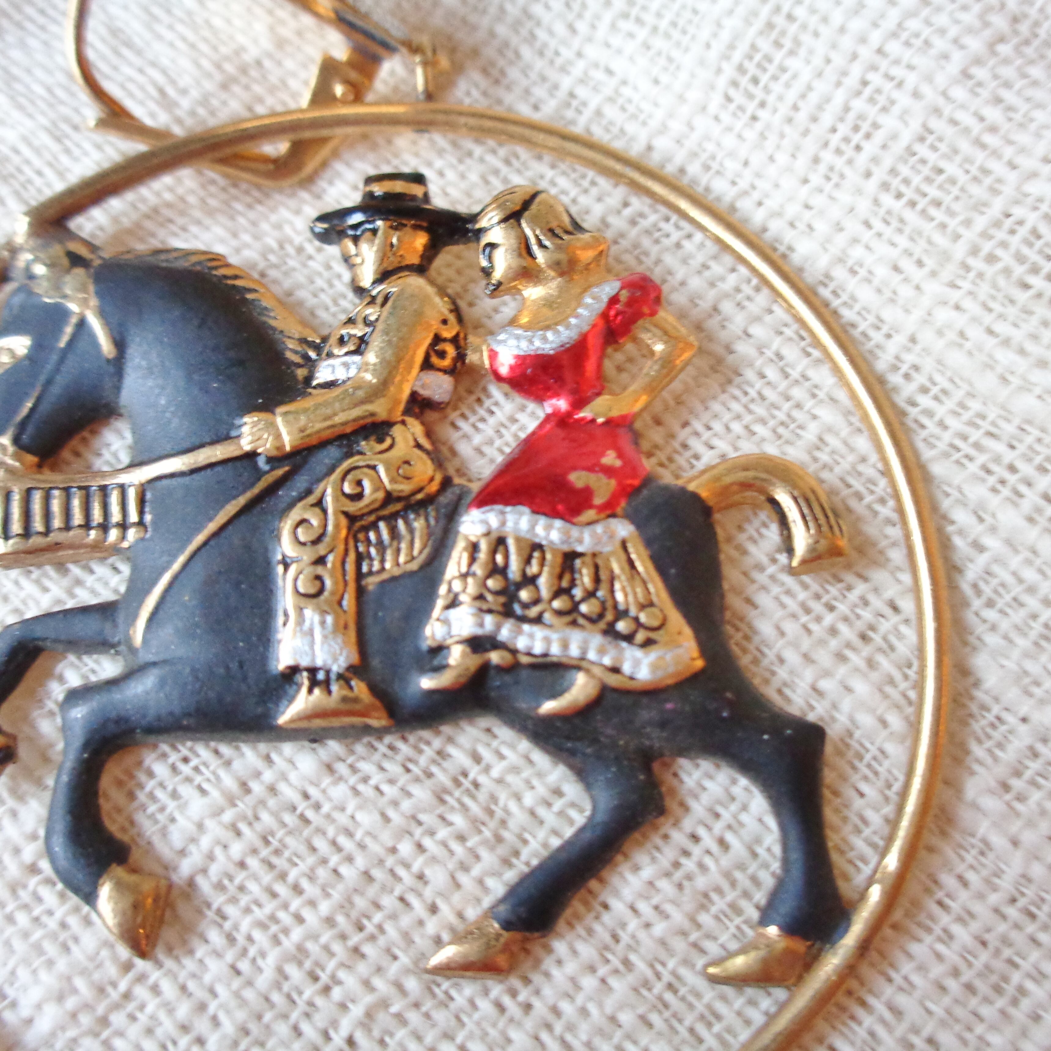 象嵌本来の意味は一つの素材に異質の素材を嵌め込むと言う意味合いがあるそうです。クリップ部分のハットとフープの中の乗馬がスペインらしい雰囲気のあるピアスです。