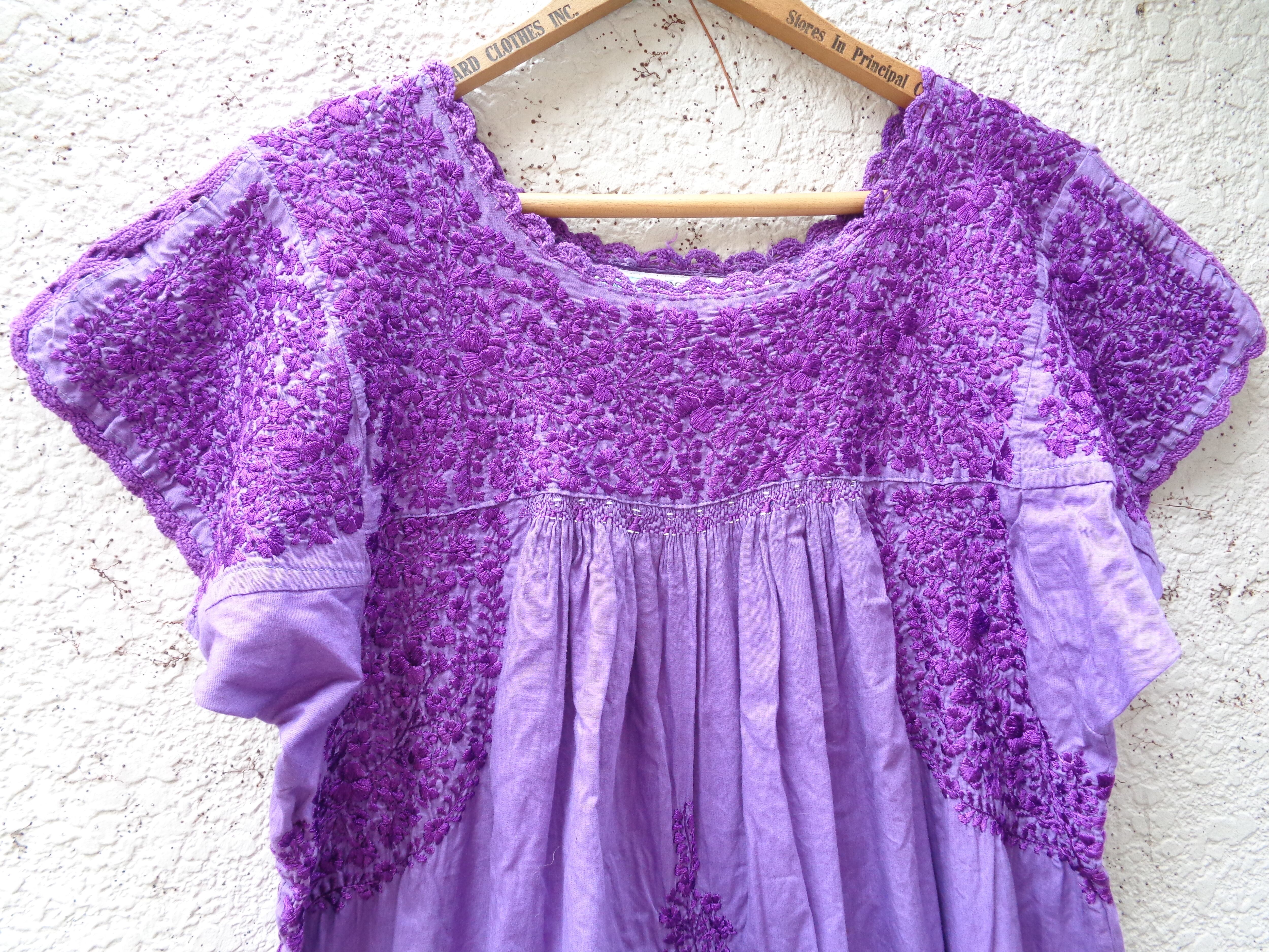メキシコオアハカ州の伝統的なデザインのハンド刺繍のワンピースです。とても細かい刺繍なので刺繍部分を終えるのに数ヶ月かかる物もあるそうです。最高クオリティーのワンピースはかつて結婚式で着るための花嫁衣装でもあり、メキシコらしい色鮮やかな物が多いです。
