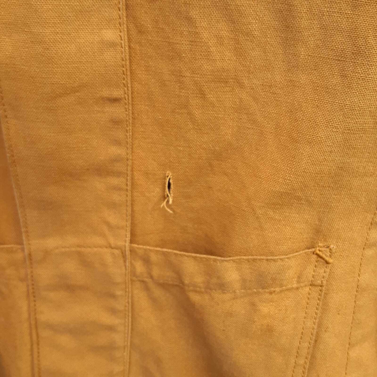 こちらの商品は、左身頃にブリーチ跡、右袖右ポケット上に穴、リペア跡がございます。
