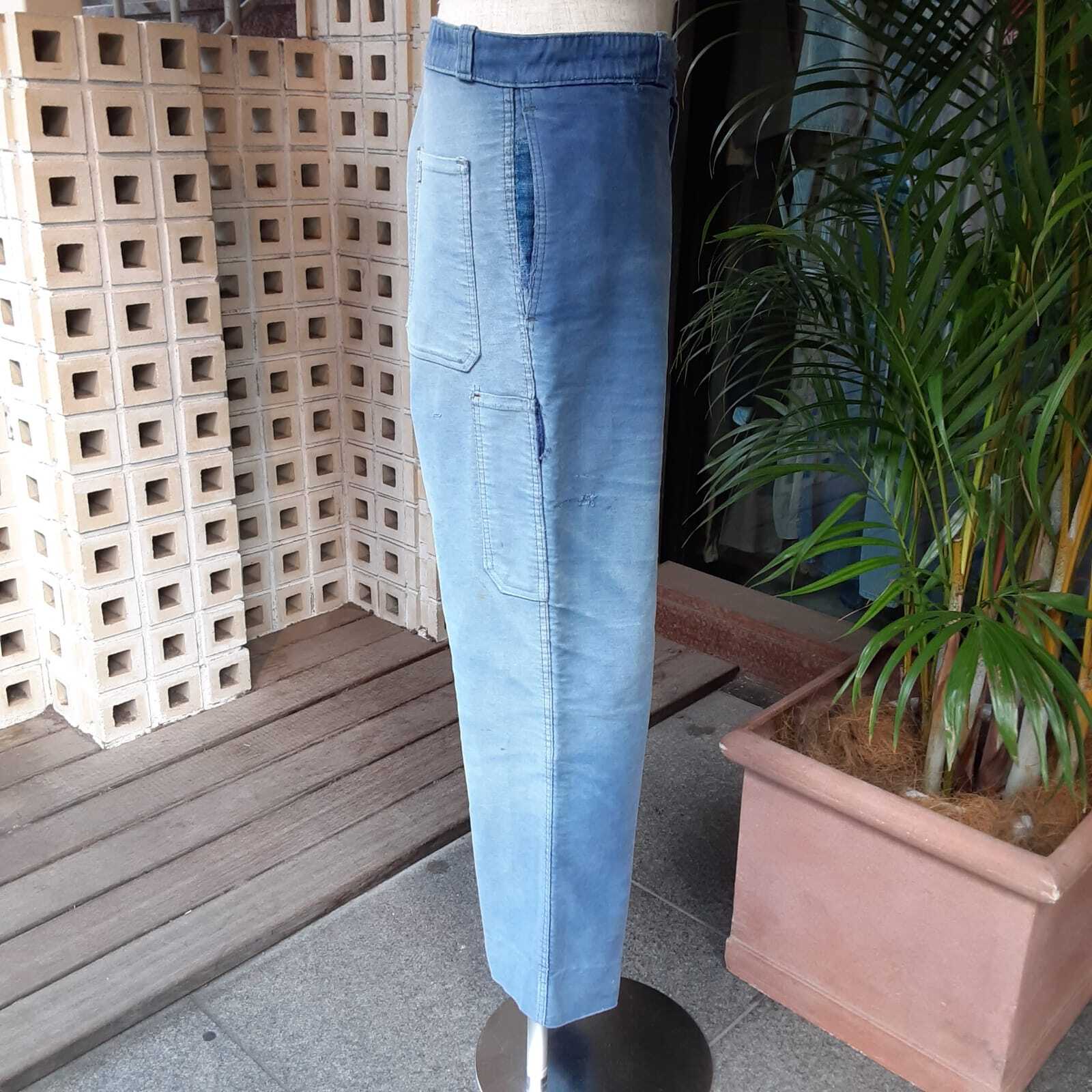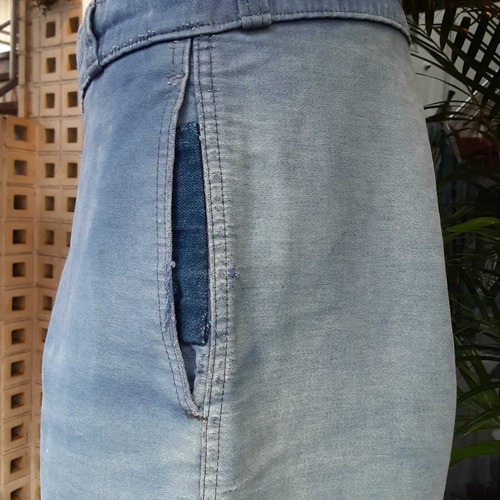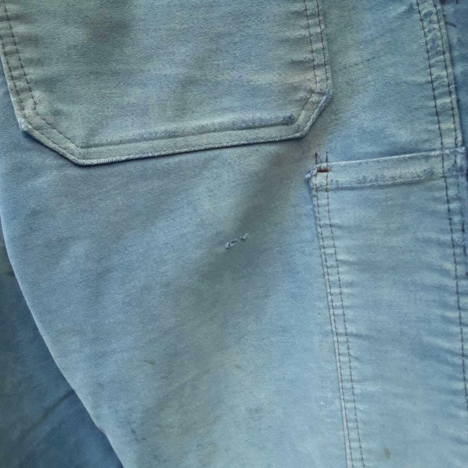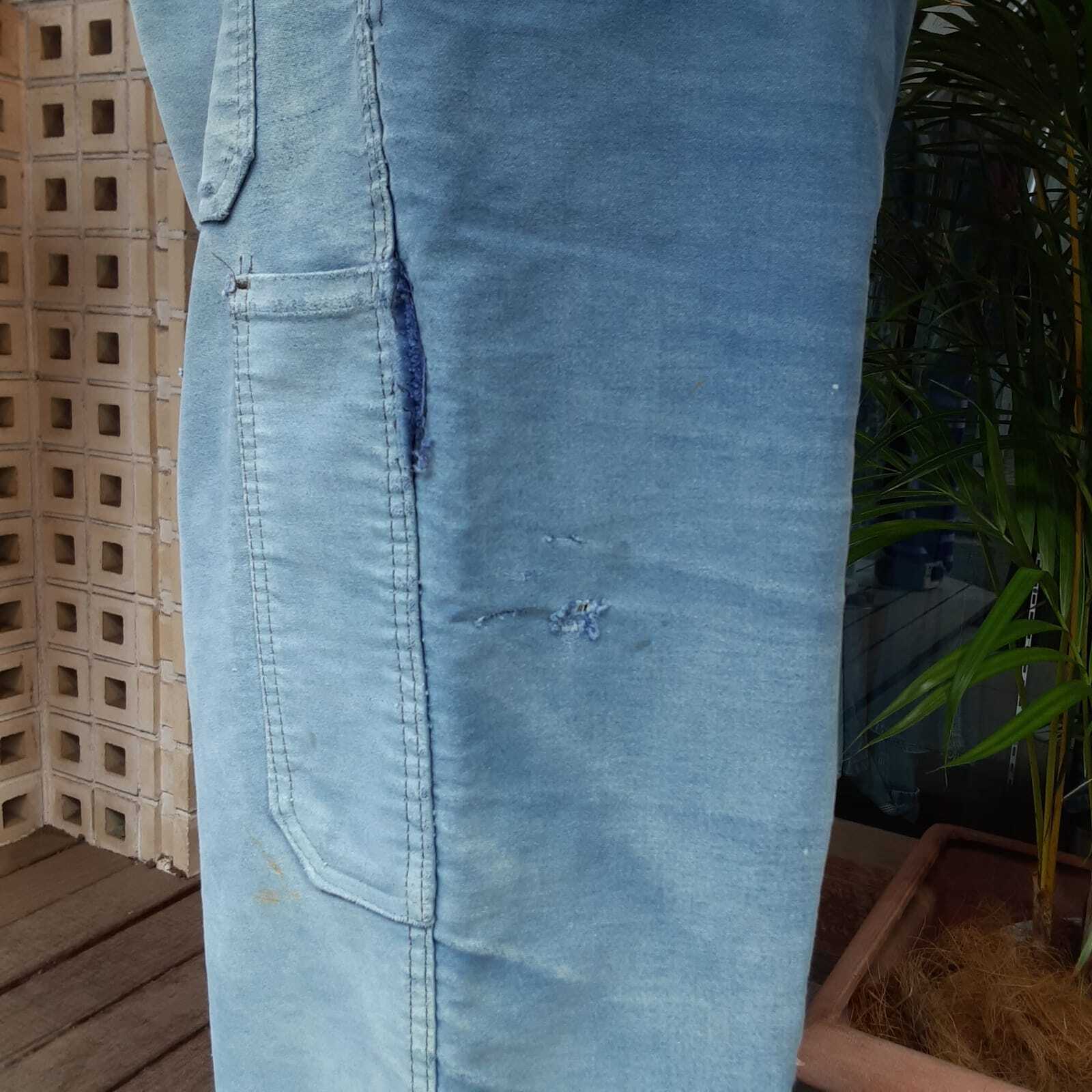 こちらの商品は、全体的な色落ちやペンキ汚れ、右太ももに穴がございます。